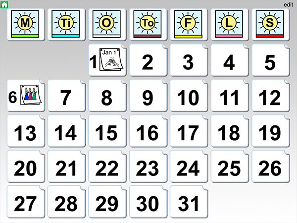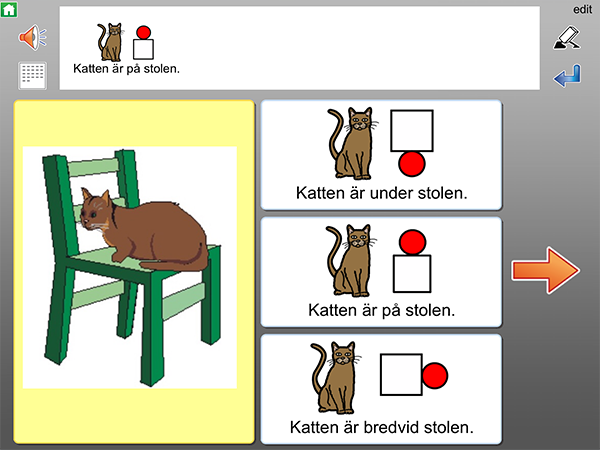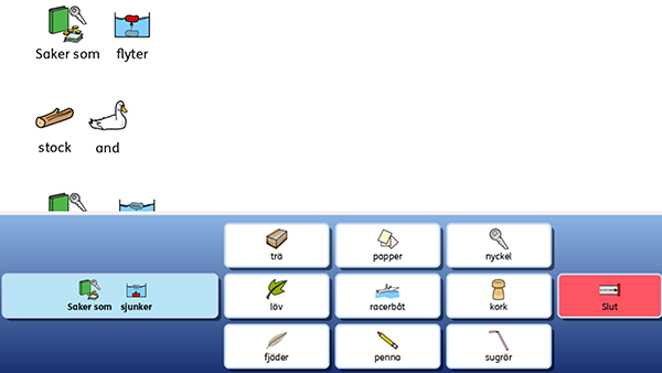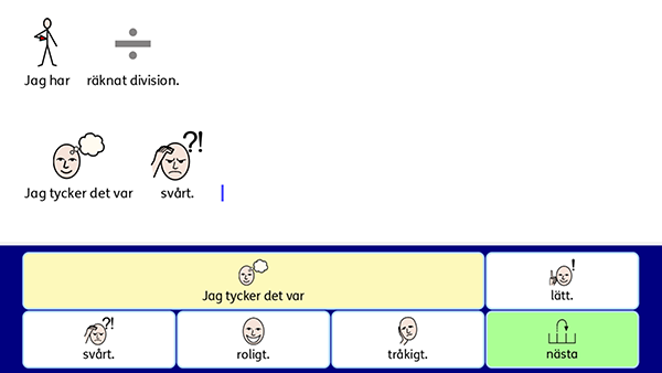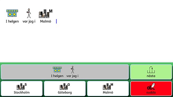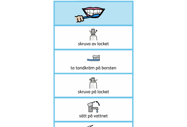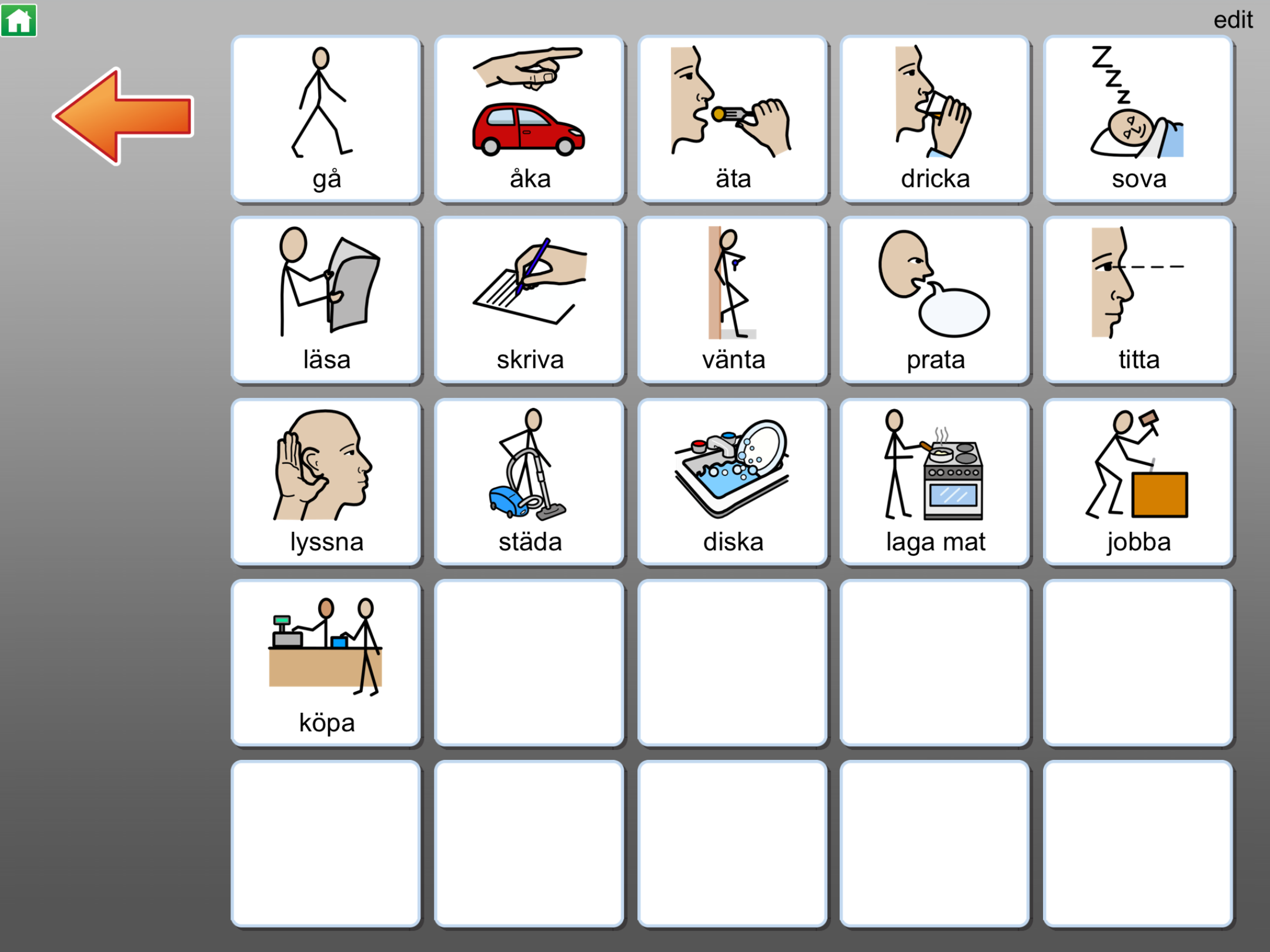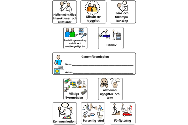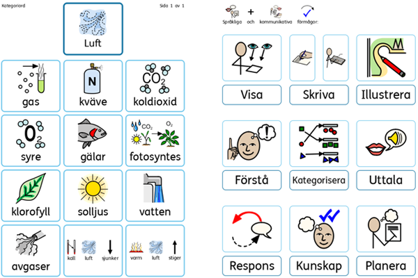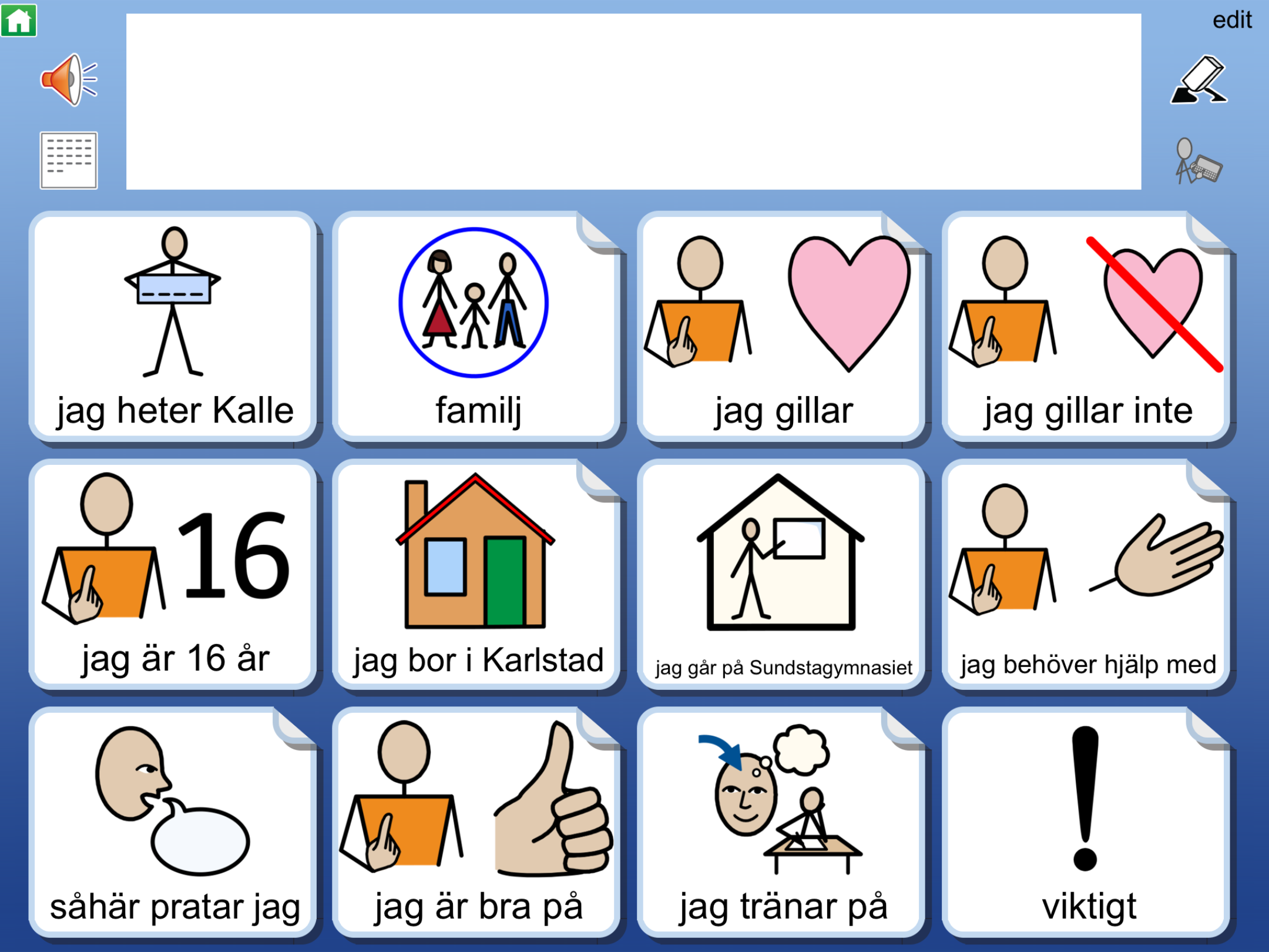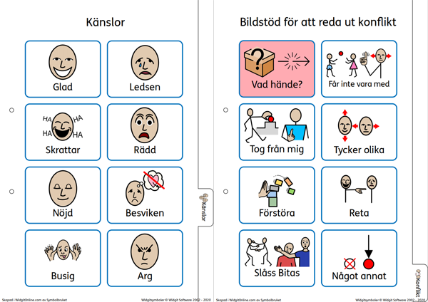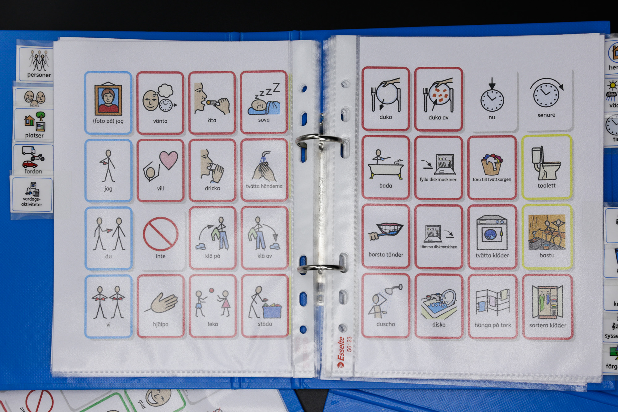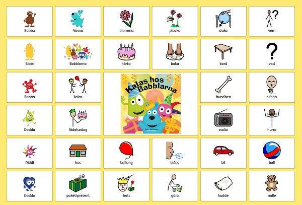 Materialet består av fyra uppsättningar med symbolkartor där man efterhand som den kommunikativa förmågan utvecklas får tillgång till mera utbyggt ordförråd, via bildstöd med Widgitsymboler. Strukturen i de fyra pärmarna är densamma där nyckelsymboler alltid har samma placering på varje sida och det visuella stödet förstärks av färgmarkering på linjerna runt symbolerna. Alla pärmarna kan laddas ner och användas i Widgit Online eller InPrint, där det sedan kan redigeras och individanpassas. Den fjärde pärmen finns även tillgänglig som upplägg till Widgit Go.