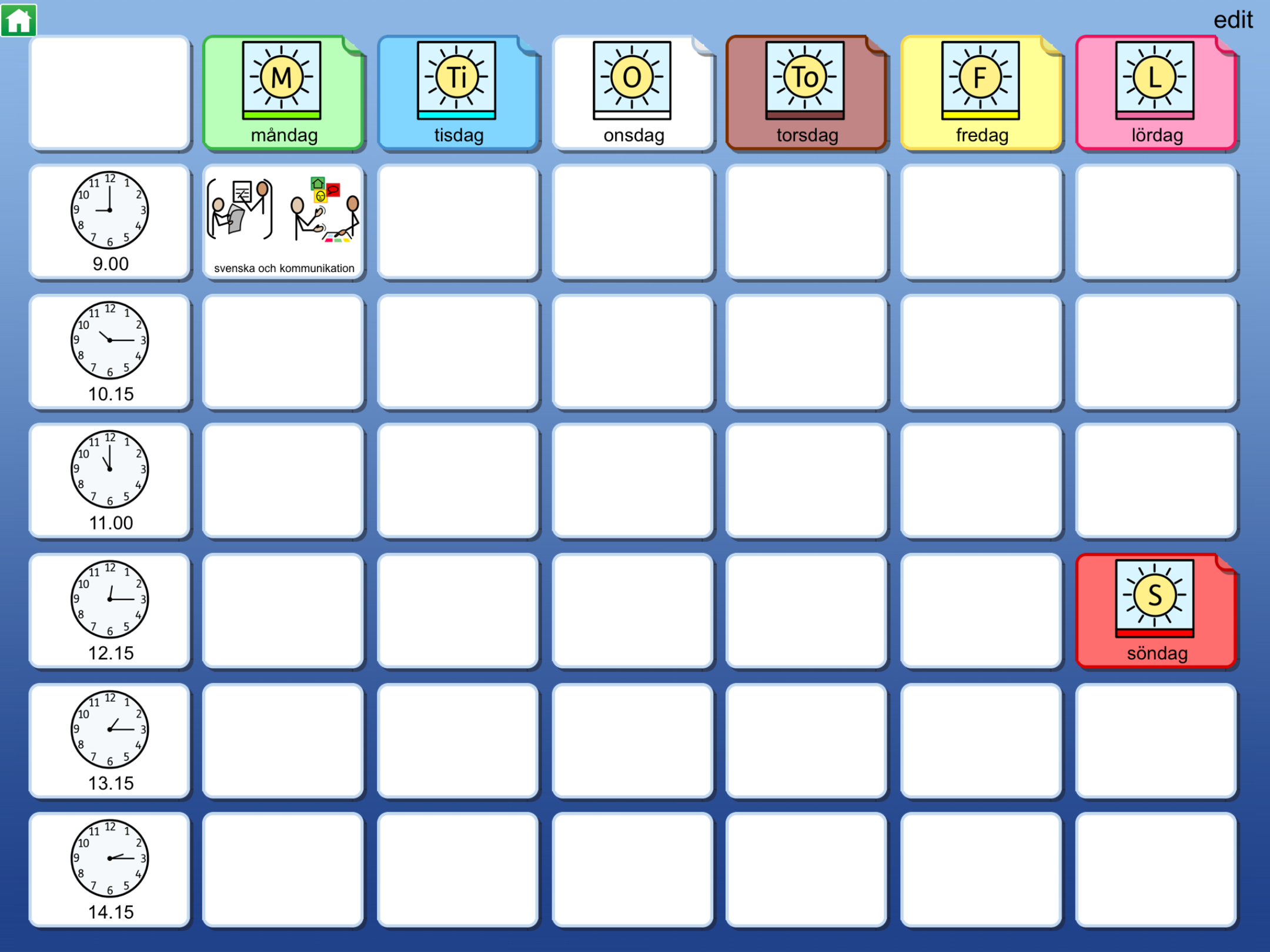 Starta Widgit Go i iPaden och välj Importera (i redigeringsläget). Välj den tjänst du använder och logga in på samma konto som du laddade upp upplägget till.