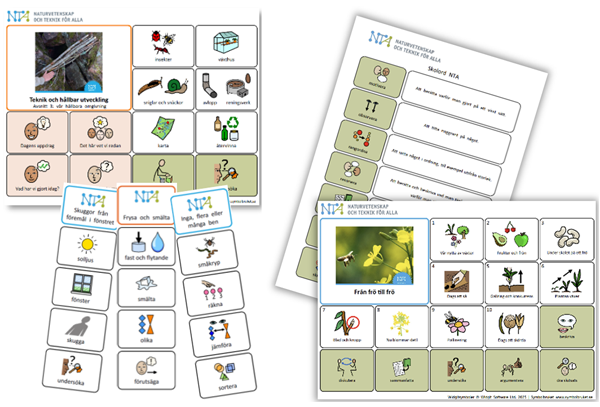 Materialet består av fyra uppsättningar med symbolkartor där man efterhand som den kommunikativa förmågan utvecklas får tillgång till mera utbyggt ordförråd, via bildstöd med Widgitsymboler. Strukturen i de fyra pärmarna är densamma där nyckelsymboler alltid har samma placering på varje sida och det visuella stödet förstärks av färgmarkering på linjerna runt symbolerna. Alla pärmarna kan laddas ner och användas i Widgit Online eller InPrint, där det sedan kan redigeras och individanpassas. Den fjärde pärmen finns även tillgänglig som upplägg till Widgit Go.