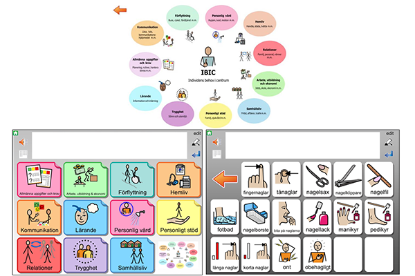 Materialet består av fyra uppsättningar med symbolkartor där man efterhand som den kommunikativa förmågan utvecklas får tillgång till mera utbyggt ordförråd, via bildstöd med Widgitsymboler. Strukturen i de fyra pärmarna är densamma där nyckelsymboler alltid har samma placering på varje sida och det visuella stödet förstärks av färgmarkering på linjerna runt symbolerna. Alla pärmarna kan laddas ner och användas i Widgit Online eller InPrint, där det sedan kan redigeras och individanpassas. Den fjärde pärmen finns även tillgänglig som upplägg till Widgit Go.